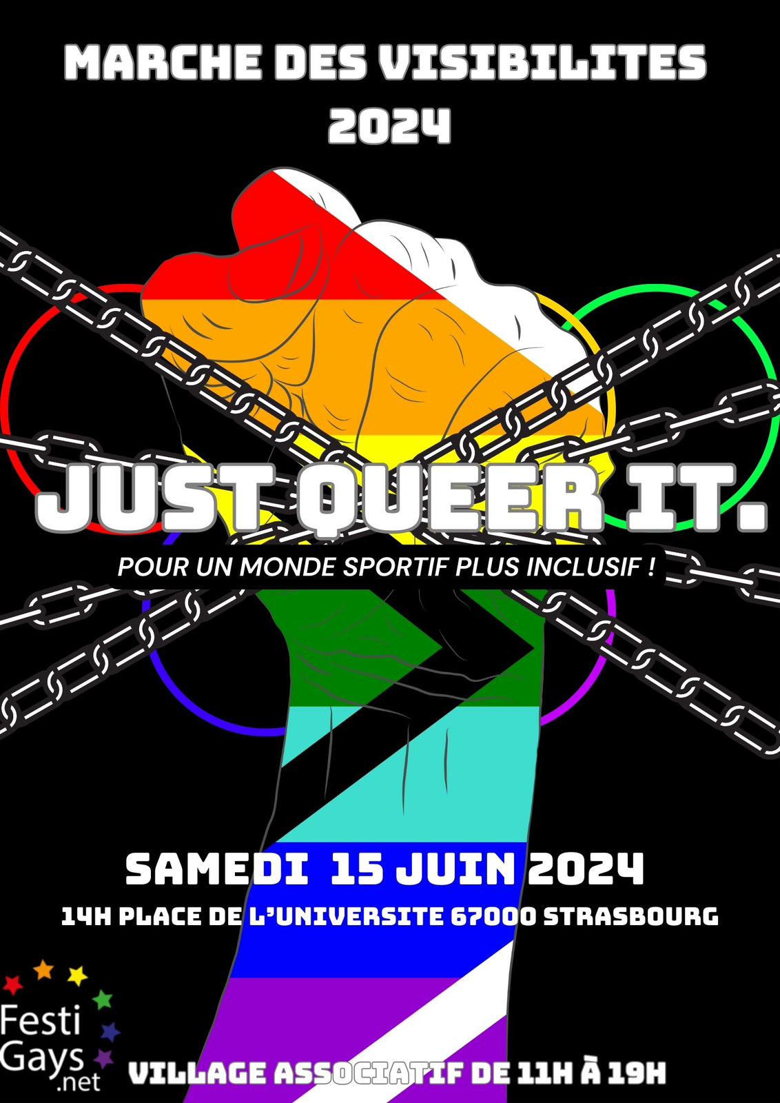 C’est pourquoi, nous vous proposons de se réunir le samedi 15 juin 2024 pour, notamment, lutter contre les LGBTI+phobies dans le milieu sportif. Marche des Visibilités LGBTI+ de Strasbourg 2024