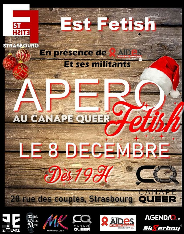 À vos agendas : apéro fetish le 8/12 au @canapequeerstrasbourg en présence de militants @aides_strasbourg @assoaides dans le cadre de la journée mondiale de lutte contre le VIH / Sida.